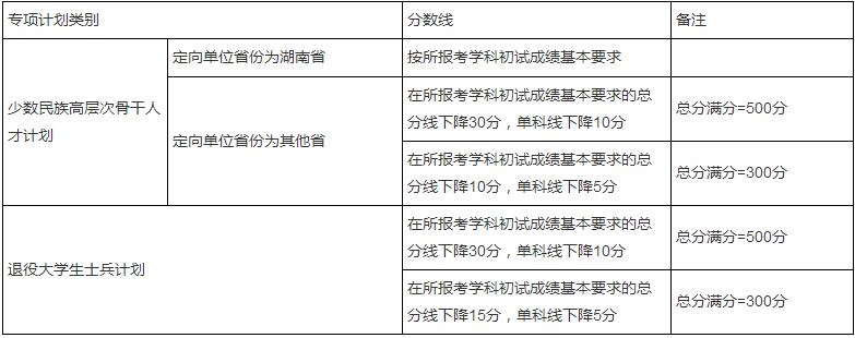 4.工作單位在國(guó)務(wù)院公布的民族區(qū)域自治地方,且定向就業(yè)原單位的少數(shù)民族在職人員考生,可在相應(yīng)學(xué)科分?jǐn)?shù)線基礎(chǔ)上總分降5分或一門(mén)單科降5分。符合條件的考生于3月14日前向湖南大學(xué)研究生院招生辦公室提出書(shū)面申請(qǐng)。