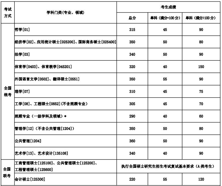 1、統(tǒng)考生中工作單位在國(guó)務(wù)院公布的民族區(qū)域自治地方,即 5 個(gè)自治區(qū)、30 個(gè)自治州、119 個(gè)自治縣(旗),并報(bào)考為原單位定向就業(yè)的少數(shù)民族在職人員考生,可享受少數(shù)民族照顧政策,即在學(xué)校初試合格資格線基礎(chǔ)上總分降 10 分,單科降 5 分。2、各院(系)可在滿足學(xué)校初試合格資格線的基礎(chǔ)上,根據(jù)本院(系)生源和招生規(guī)模的實(shí)際情況,確定本院(系)各學(xué)科(專(zhuān)業(yè)領(lǐng)域)的復(fù)試線。3、*照顧專(zhuān)業(yè)(一級(jí)學(xué)科及領(lǐng)域):力學(xué)[0801]、 冶金工程[0806]、 動(dòng)力工程及工程熱物理[0807]、 地質(zhì)資源與地質(zhì)工程[0818]、礦業(yè)工程[0819]、冶金工程[085205]、動(dòng)力工程[085206]、礦業(yè)工程[085218]、安全工程[085224]。4、單獨(dú)考試考生進(jìn)入復(fù)試的初試成績(jī)總分不低于 270 分,單科不低于 50 分。5、退役大學(xué)生士兵計(jì)劃全國(guó)統(tǒng)考考生執(zhí)行學(xué)校初試合格資格線基礎(chǔ)上總分降 10 分,單科降 5 分;管理類(lèi)聯(lián)考考生執(zhí)行總分不低于 170 分,外國(guó)語(yǔ)不低于 42 分,管理類(lèi)綜合不低于 84 分。6、少數(shù)民族高層次骨干人才計(jì)劃、對(duì)口支援計(jì)劃等專(zhuān)項(xiàng)計(jì)劃考生參加復(fù)試的初試成績(jī)基本要求另行公