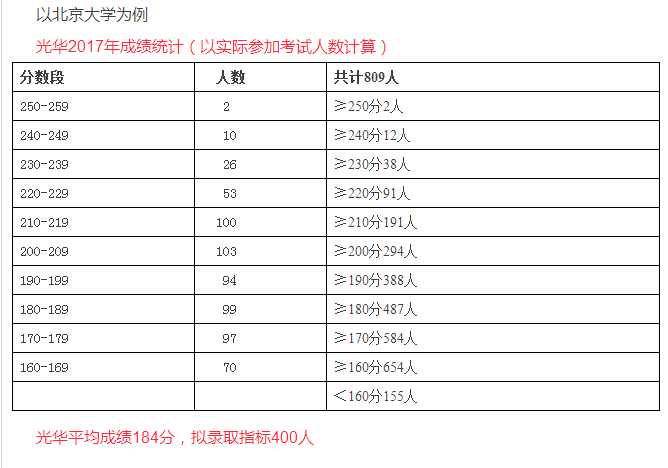 由于光華與匯豐是統(tǒng)一由北京大學(xué)劃線的,即錄取分?jǐn)?shù)線是一樣的,都是達(dá)到國(guó)家A線就錄取。從這兩個(gè)學(xué)院今年的成績(jī)、指標(biāo)與去年比較來(lái)看,分?jǐn)?shù)線在175-180會(huì)相對(duì)合適。