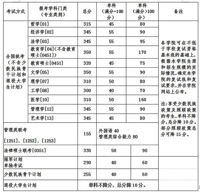 *享受照顧政策考生:參加“大學(xué)生志愿服務(wù)西部計(jì)劃”、“三支一扶計(jì)劃”(支農(nóng)、支教、支醫(yī)和扶貧)、“赴外漢語教師志愿者”、“選聘高校畢業(yè)生到村任職”、 “農(nóng)村義務(wù)教育階段學(xué)校教師特設(shè)崗位計(jì)劃”項(xiàng)目服務(wù)期滿的考生,普通高等學(xué)校應(yīng)屆畢業(yè)生應(yīng)征入伍服務(wù)義務(wù)兵役退役后的考生,在三年內(nèi)參加全國碩士研究生招生考試。其中“選聘高校畢業(yè)生到村任職”符合照顧要求的考生,若報(bào)考人文社科類專業(yè),復(fù)試線可總分降15分。