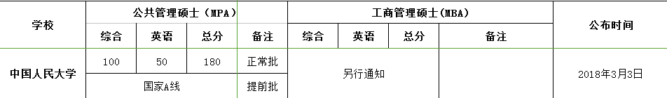 2018年中國人民大學(xué)MBA碩士研究生復(fù)試分?jǐn)?shù)線院校動態(tài)