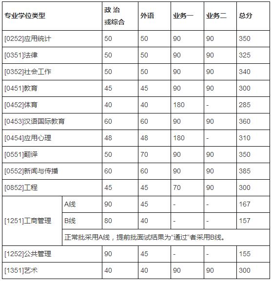 一、學(xué)校復(fù)試基本分?jǐn)?shù)線(專業(yè)學(xué)位類)