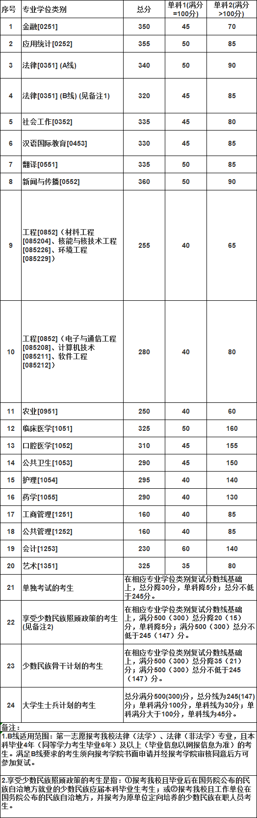 蘭州大學(xué)2019年碩士研究生招生復(fù)試分?jǐn)?shù)線(專業(yè)學(xué)位)