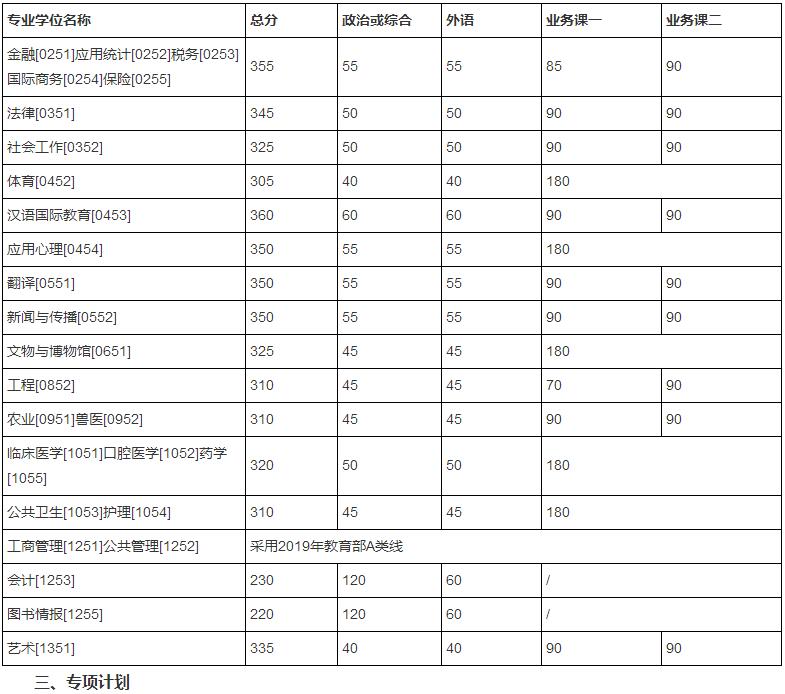 3.關于少數(shù)民族高層次骨干人才專項計劃,對于達到復試基本成績要求的考生,按照教育部下達給我校的分省招生計劃擇優(yōu)確定復試名單(見附件),沒有合格生源省份的招生計劃將按照初試總分由高到低的原則調劑給生源充足的省份。聯(lián)考考生成績按照初試成績滿分500分折算后統(tǒng)籌考慮。定向服務地區(qū)招生計劃詳見教育部相關網站。