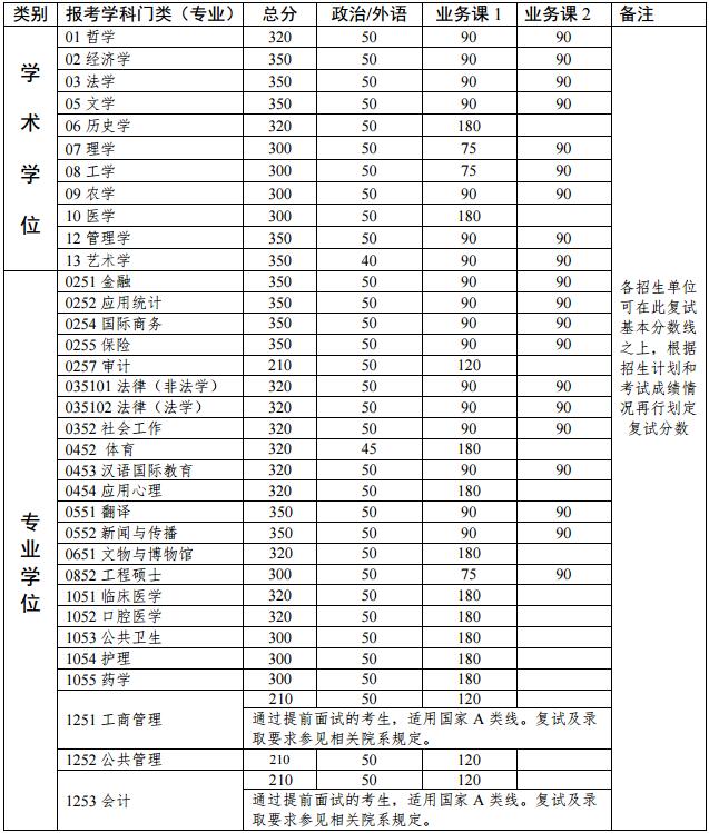 中山大學(xué)2019年碩士研究生招生考試復(fù)試基本分?jǐn)?shù)線