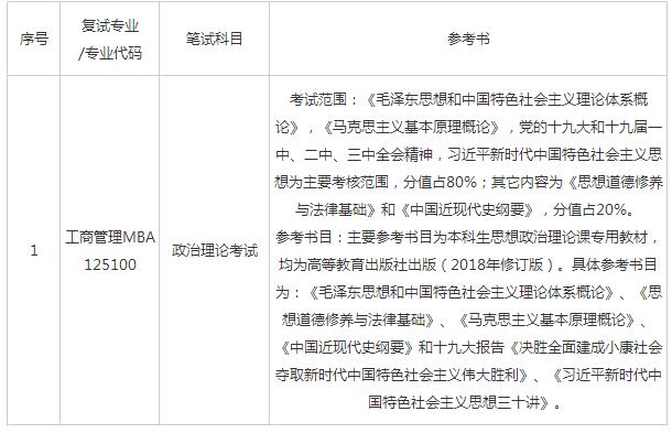 加試政治理論課考試。根據(jù)教育部關(guān)于印發(fā)《2019年全國碩士研究生招生工作管理規(guī)定》的通知(教學(xué)〔2018〕5號)文件規(guī)定:工商管理、公共管理、旅游管理、工程管理、會計、圖書情報、審計專業(yè)學(xué)位碩士思想政治理論考試由招生單位在復(fù)試中進行。工商管理(MBA)考生需加試的思想政治理論為筆試,考試時間2小時,開卷考試,滿分100分,不計入復(fù)試總成績比例計算中,但必須達到合格要求方能錄取(合格成績線待考試結(jié)束成績評定出來后根據(jù)總體情況劃定)。