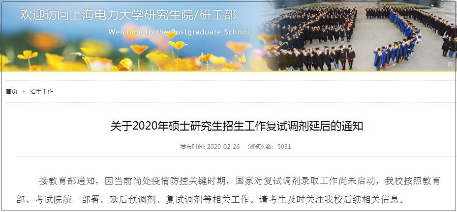 上海電力大學(xué)則直接重新發(fā)布了一篇調(diào)劑延后的公告,如下: