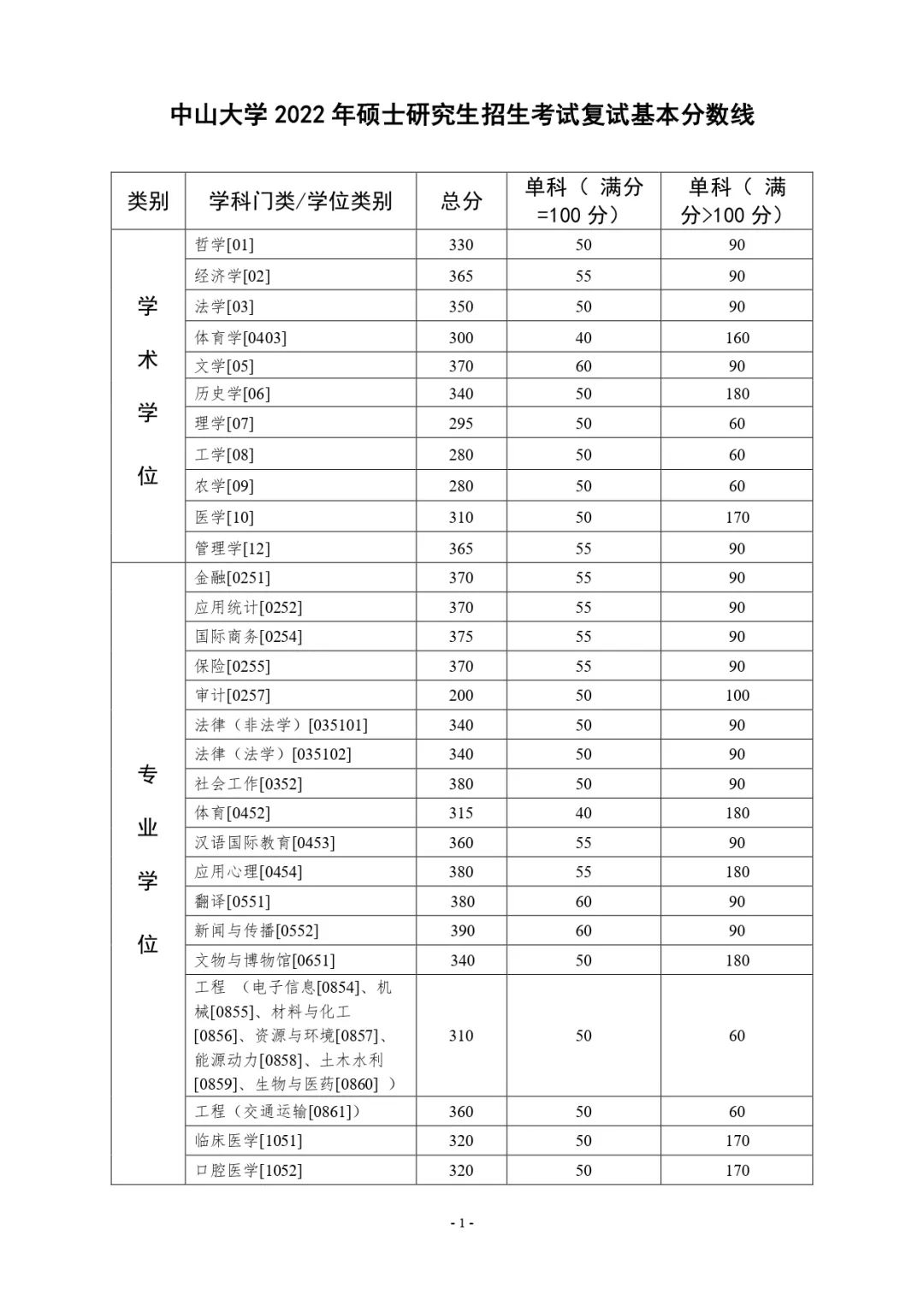 2022年中山大學(xué)研究生復(fù)試基本分?jǐn)?shù)線院校動(dòng)態(tài)