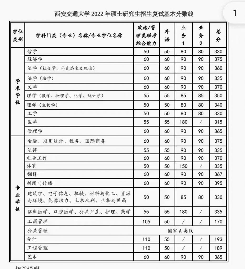 2022年西安交通大學(xué)研究生復(fù)試基本分數(shù)線院校動態(tài)