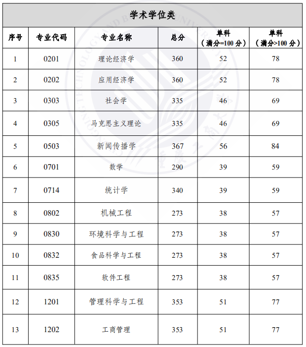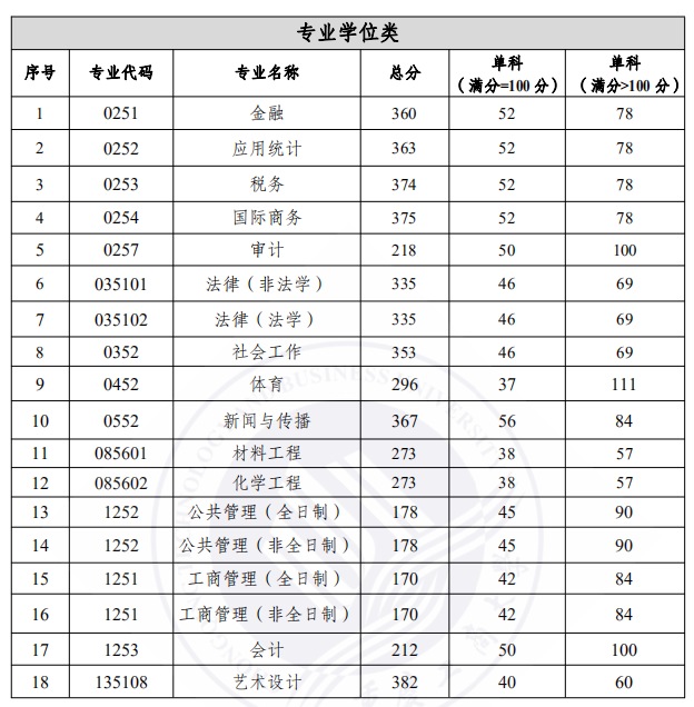 重慶工商大學 2022 年碩士研究生招生考試考生進入復試的初試成績基本要求