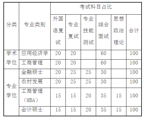 2.復(fù)試成績中各項(xiàng)所占百分比